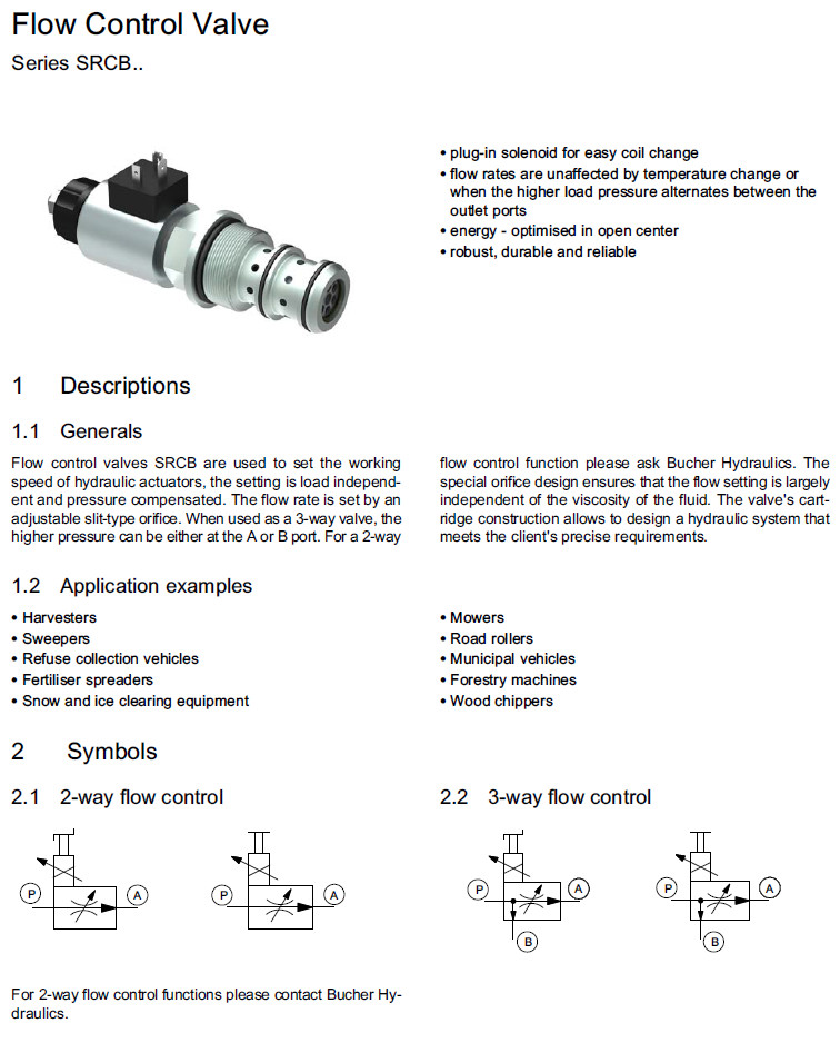 SRCB050S3-0G12,SRCB050N3-0G12,SRCB050T3-0G12,SRCB050S2-0G12,Bucher流量控制閥