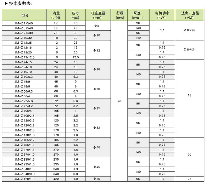 JM-Z-4.0-40,JM-Z-6.0/40,JM-Z-7.0/30,JM-Z-10/30,JM-Z-12/25,JM-Z-19/20,液壓隔膜式計量泵
