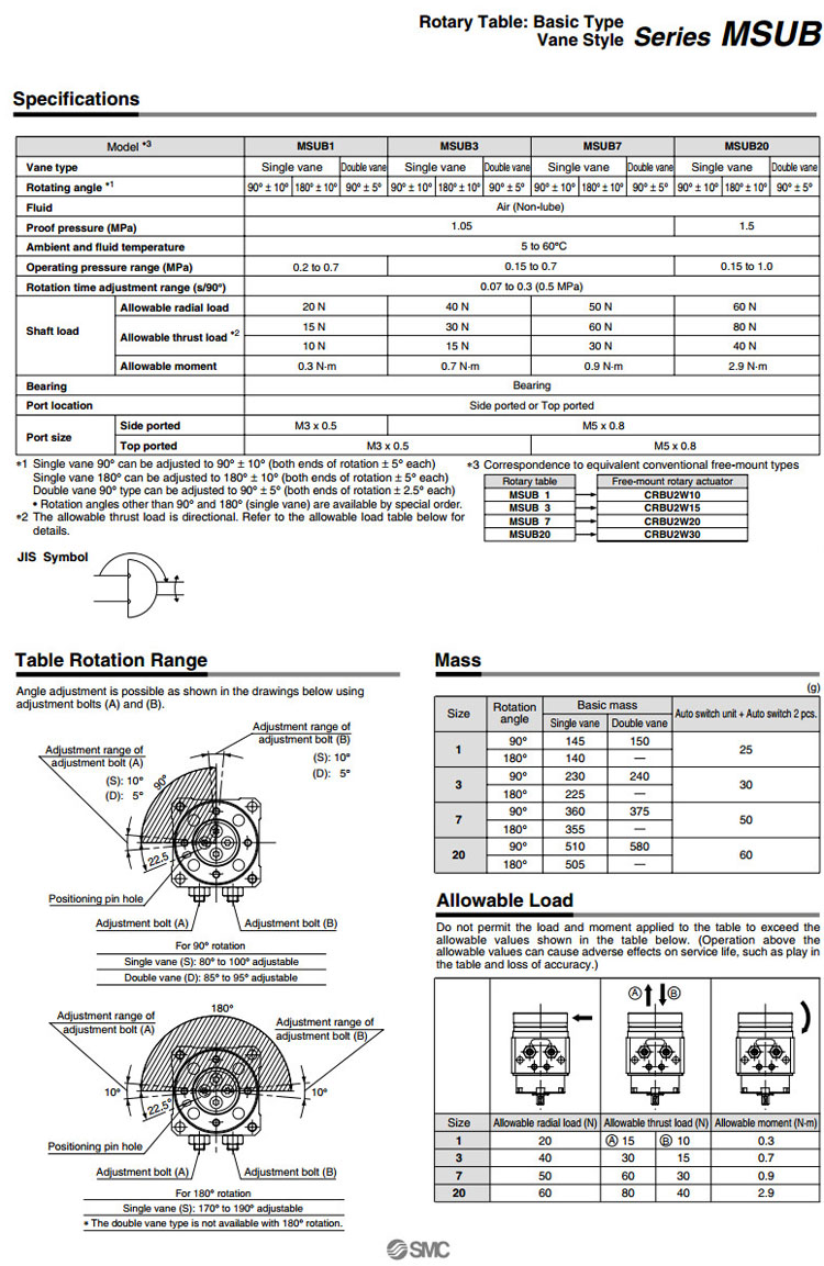 MDSUB1-90,MDSUB1-180,MDSUB3-90,MDSUB3-180,MDSUB7-90,MDSUB7-180,MDSUB20-90,MDSUB20-180,SMC擺臺(tái)氣缸