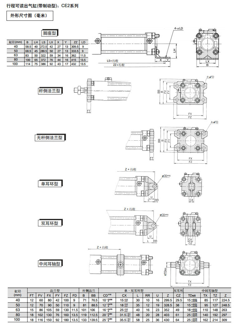 CE2B40-100,CE2L40-100,CE2F40-100,CE2G40-100,CE2C40-100,CE2D40-100,CE2T40-100,SMC行程可讀出氣缸