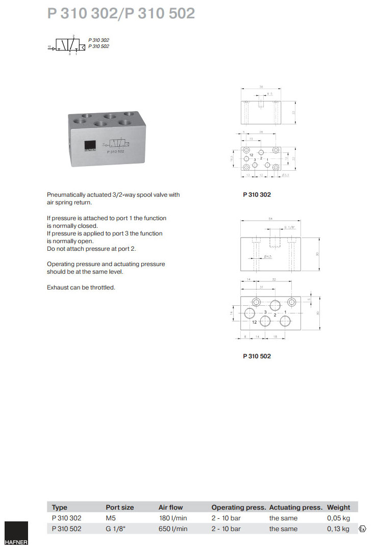 P310302,P310502,Hafner滑閥